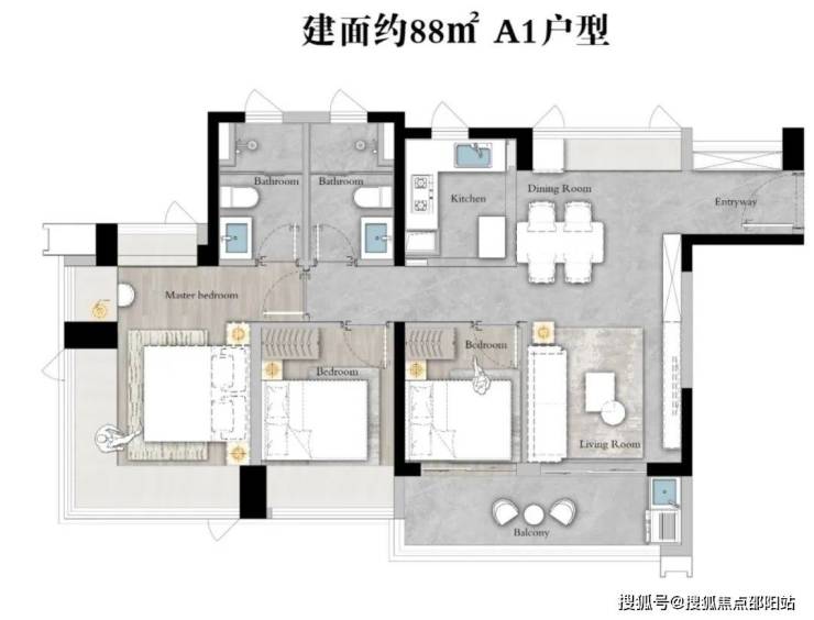 产品以主打刚需,有88㎡、98㎡、108㎡三至四房