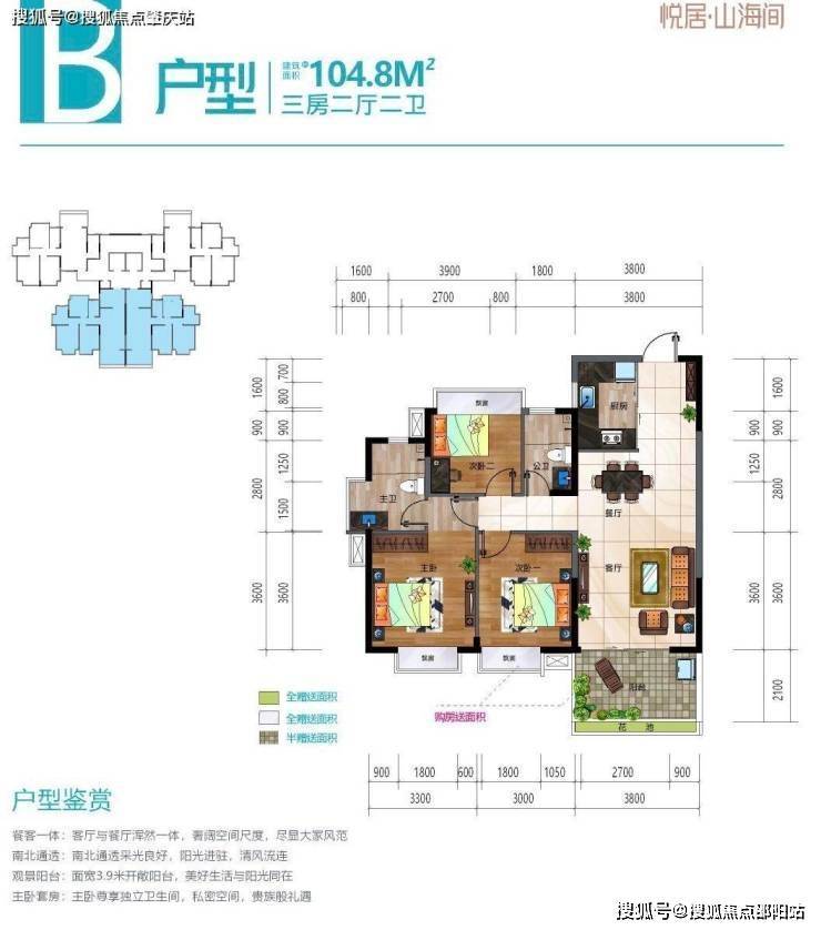 户型(南): 三房两厅两卫 半通透