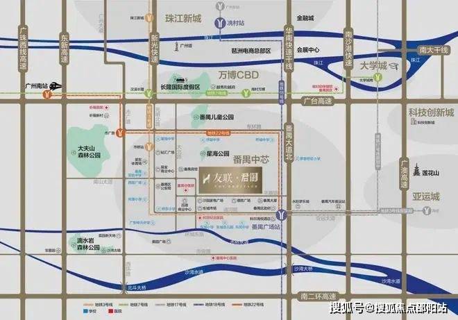 【友联·君御】地处番禺广场 TOD 片区,雄踞广州最高价值的城市核心中轴之上,是广州中轴之上继珠江新城后第二个经济文化高地,北上至番禺 CBD万博、琶洲电商总部、天河 CBD 珠江新城,南下至粤港澳大湾区几何中心南沙经济特区,聚焦区位优势,执掌时代红利。