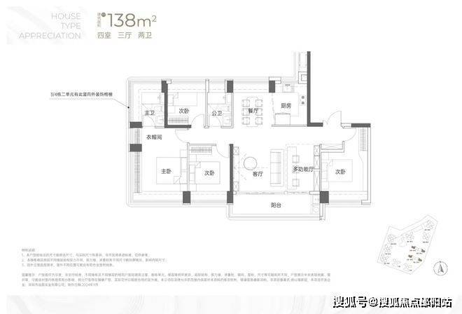 建面约138㎡4房2卫