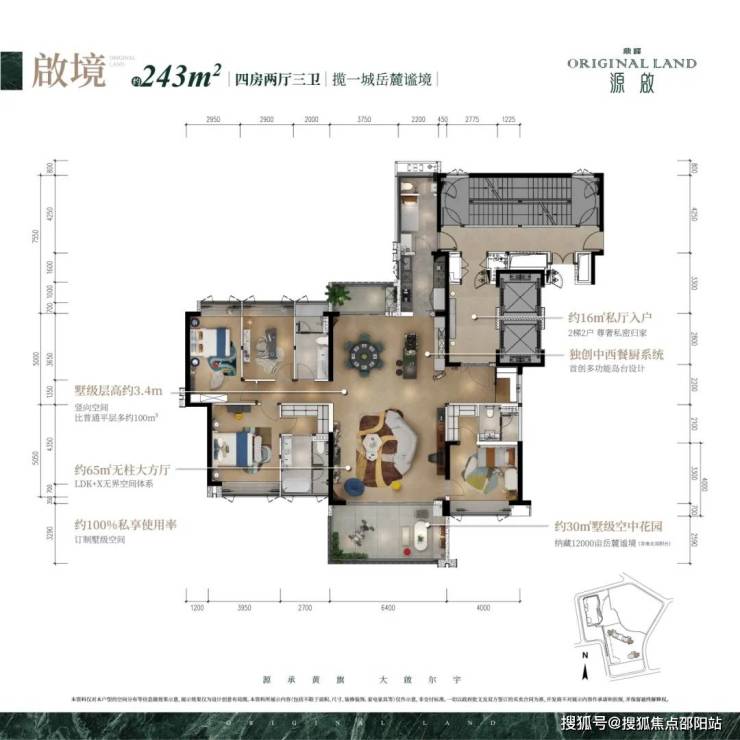 「鼎峰源啟」,整个小区总建面约10万㎡,规划有150套,243-285㎡私定空中墅产品,纯大平层项目。