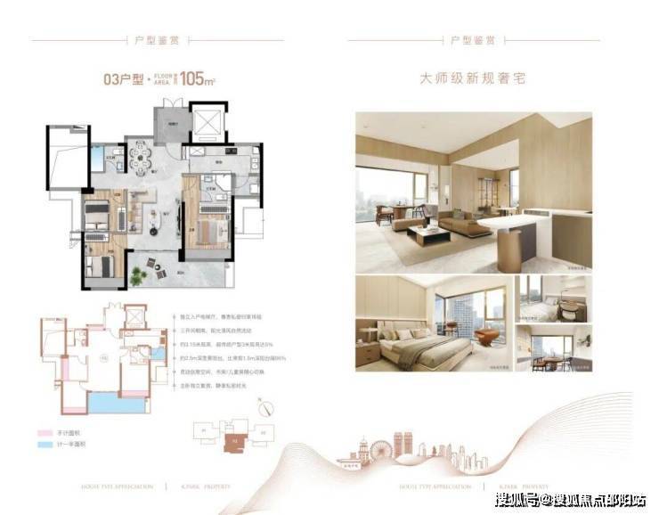 建面约105-123㎡高层产品,媲美市面约150-160㎡大平层实用率的新标准,更以细化的尺度设计,落地到每一寸空间的舒适营造。