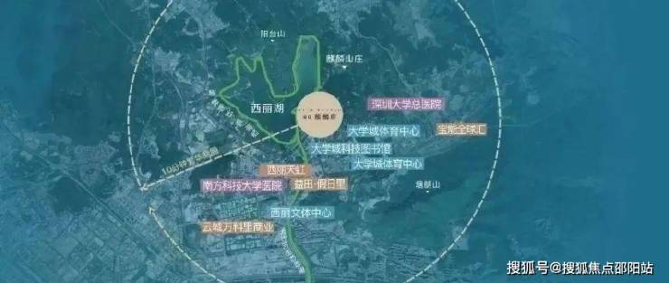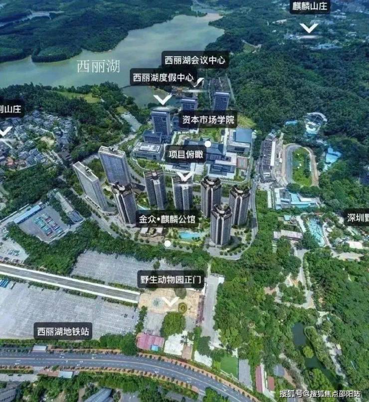 项目位于西丽度假村,旅游休闲资源丰富,主打生态景观。高层西北侧可眺望西丽湖,东南侧被深圳野生动物园(有消息称动物园原址规划为高校用地,或搬去坪山)和西丽高尔夫俱乐部环抱,远看塘朗山公园。