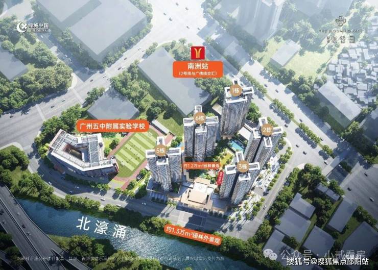从外部来看,项目背靠河涌,打造了一个滨河公园,与周边的海珠儿童公园、海珠湖、海珠国家湿地等,形成了巨大的天然的生态背景板。