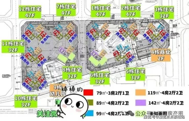 总栋数:12栋(东区5栋高层+1栋商业;西区5栋高层+1栋幼儿园)
