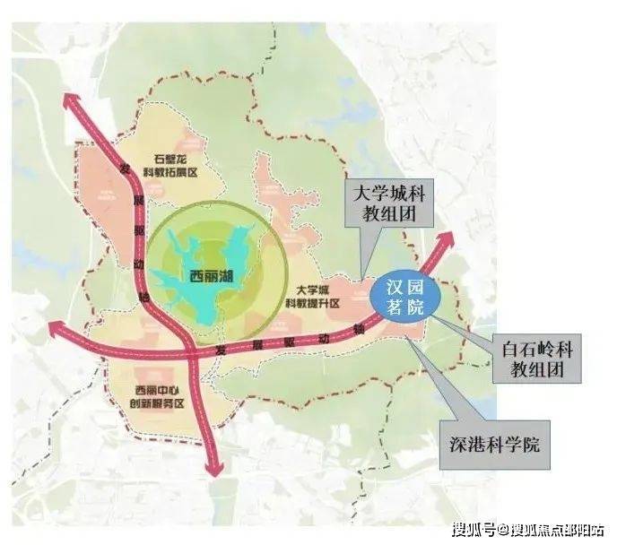 大学城片区位于大沙河创新走廊上游,属于南山区北部重要的生产生活服务中心,周边有多个深圳重大战略产业集群