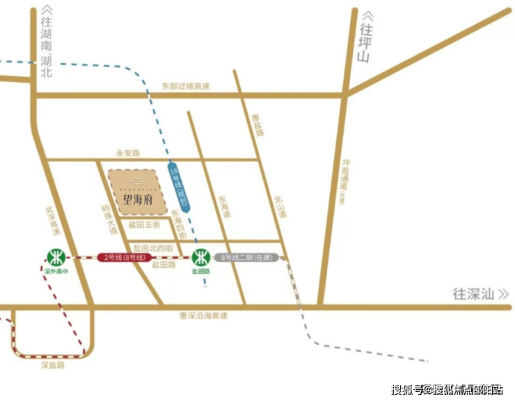 望海府位于8号线盐田路站约700米处,往西半小时到福田中心区,往东8号线二期直达大小梅沙,工作、度假都极其方便。此外盐田路站也是18号线宝盐线在盐田区域内的唯一双地铁交汇枢纽站,届时将串联光明、宝安,实现关内关外半小时生活圈。