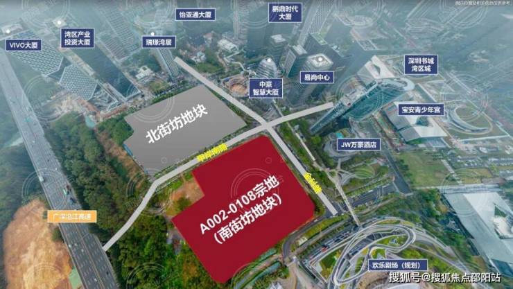 地块西南侧便是广深沿江高速,以及欢乐港湾、深圳书城湾区城、宝安青少年宫等地标性建筑。