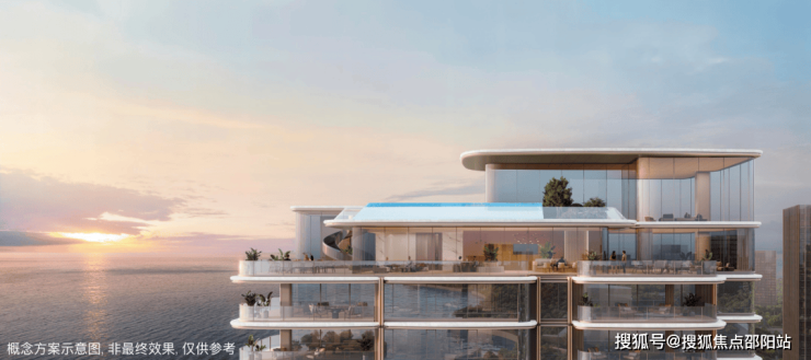 从效果图来看,户户阳台尺度豪奢,看向欢乐港湾海景及前海城市景观,顶复还带泳池,十分豪奢。