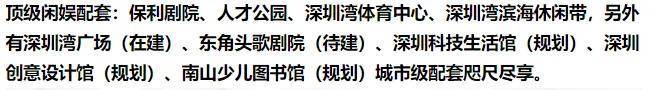 医疗配置,深圳市南山区人民医院、中国医学科学院阜外医院深圳医院、香港大学深圳医院等三所三甲医院,悉数到位。