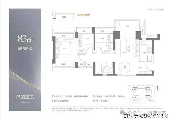 产品:建面约83-113㎡3-4房品智美学住宅,多面宽朝阳,揽清风入怀;