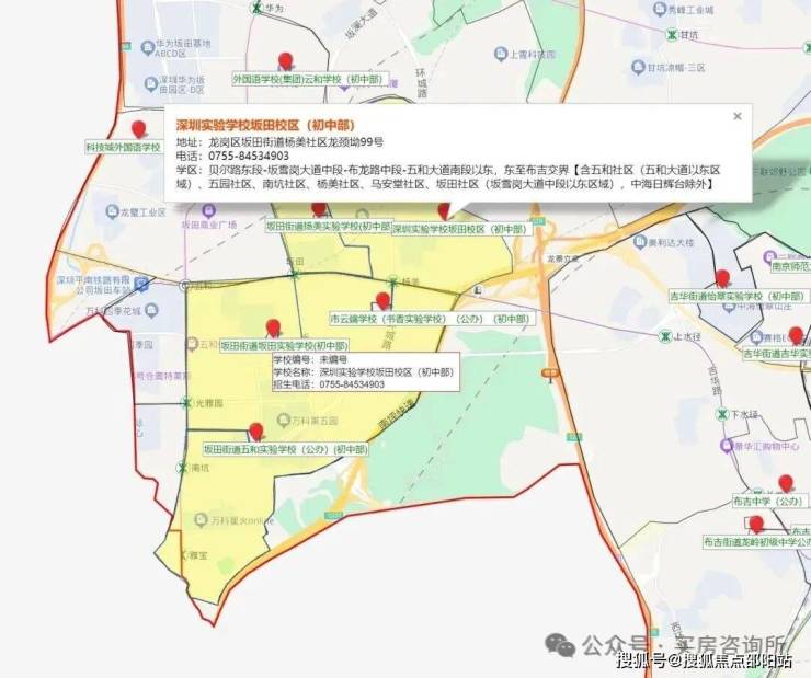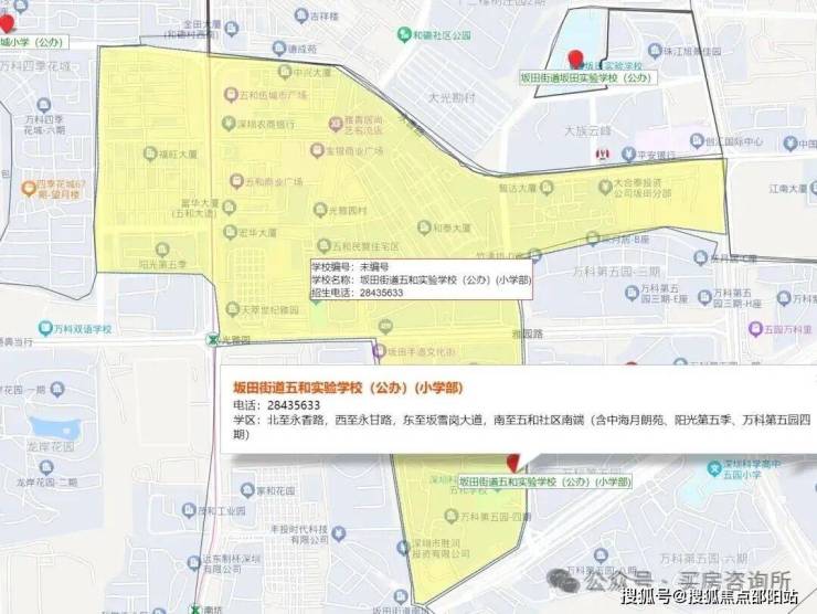 小学学区划分在,科学高中五和实验学校,中学学区划分在坂田实验学校初中部,扬美实验学校初中部,深圳实验坂田校区初中部,科学高中五和实验学校初中部。