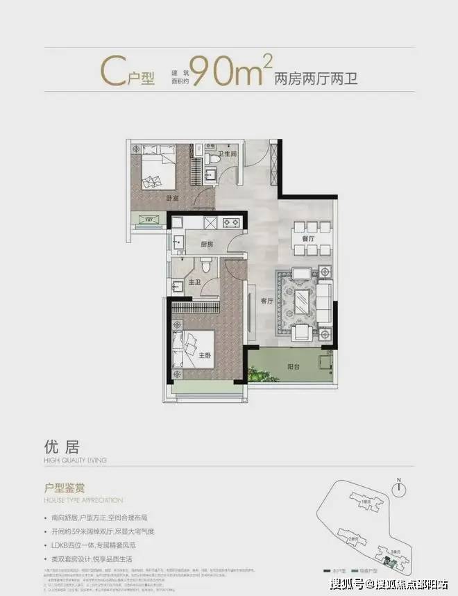 2. 90㎡以下户型,共170套,满足单身人士或新婚夫妇的刚需需求,空间布局合理,功能齐全。
