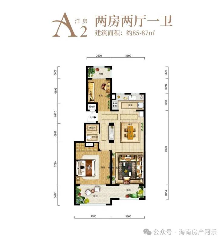 一梯两户纯正板楼,南北通透,海风山风自然对流。开放式厨房连接景观餐客厅,增强空间流动性。室室带阳台,推窗即景,营造低密纯粹山海居住体验。