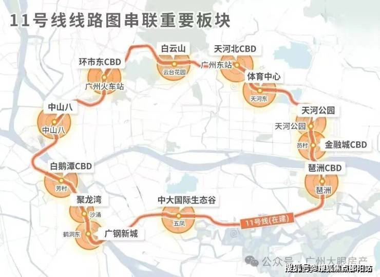 11号线是广州第一条的超级环线,市中心的“换乘之王”,直接圈定城市价值的“地段一环”。