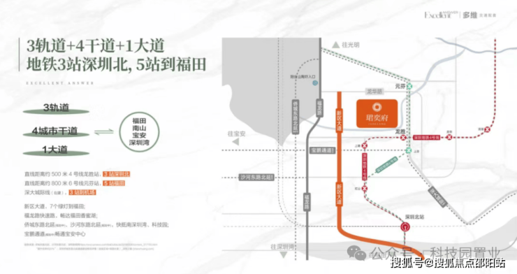 项目位于位于龙华区大浪街道龙坂大道与锦华南路交汇处,是卓越城市综合体项目内的住宅,其综合体包含商业、办公、酒店等项目。