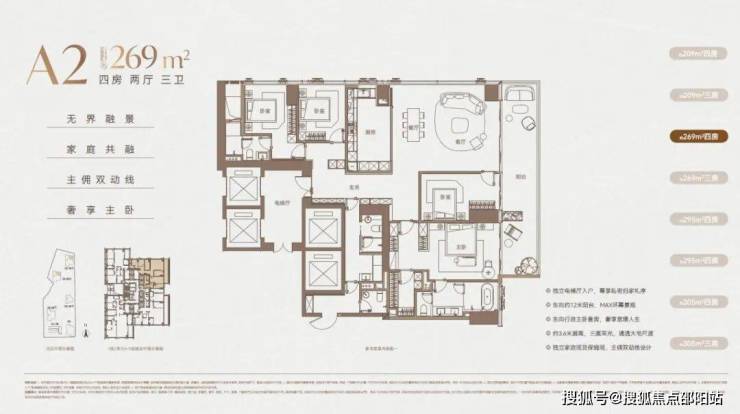 纯粹大宅,极致层高。项目首发产品涵盖建面约209㎡至1150㎡,起步即为大宅,部分户型尊享双梯入户,联动奢阔客餐厅、中西双厨与阔景阳台,辅以多套间布局,勾勒出从容优雅的生活图景。