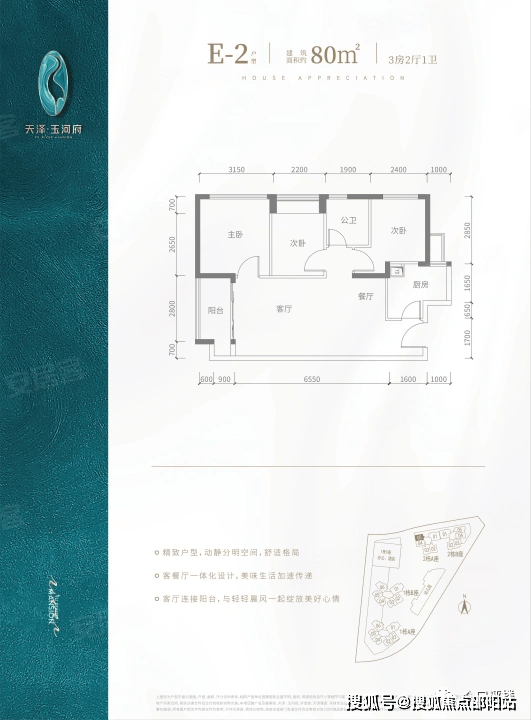 项目集高品质住宅、办公、商业及酒店于一体的综合体,共3栋,其中4座住宅,1座办公及酒店,主要产品为建面约80㎡-143㎡二至四房。