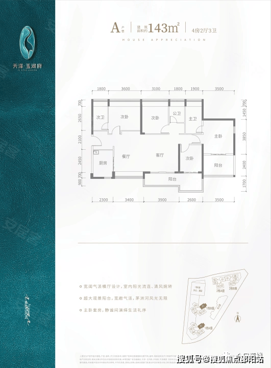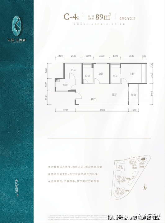 推售户型:建面约80-143㎡2-4房河岸美宅