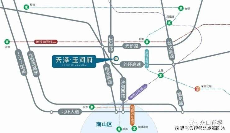 项目距南山直线距离仅8公里,相对于光明区其他区域而言,有天然距离优势。与宝安中心/西丽/南山科技园,通过南光高速/外环高速实现快速对接。