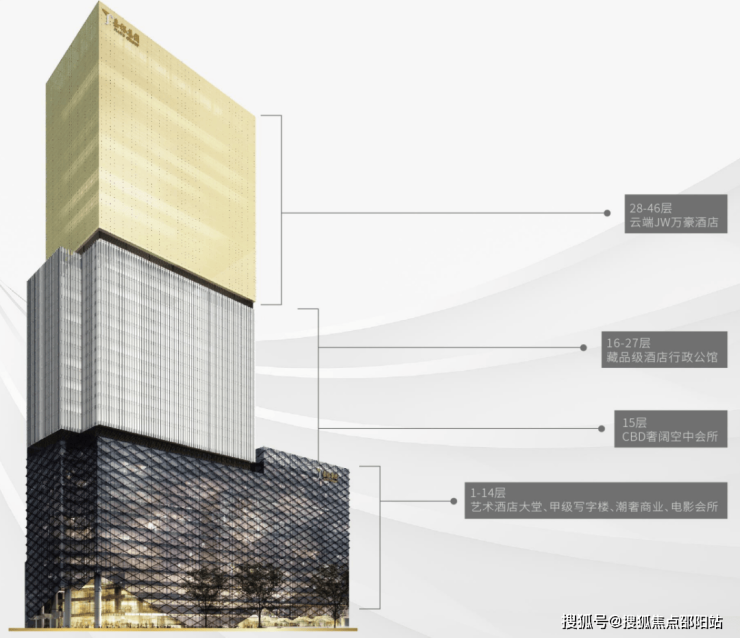 1-14层:甲级商务写字楼、精奢商业、高端影视会所