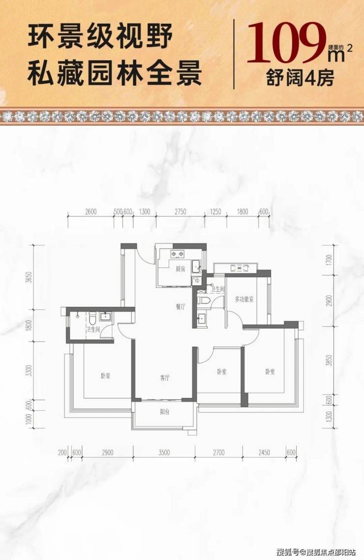 109㎡的4房2厅2卫,折后总价541-560万/套,单价4.96-5.13万/㎡。