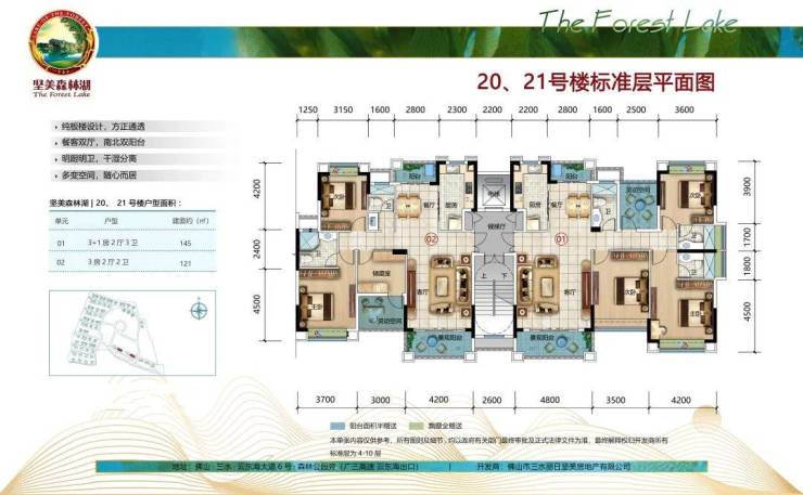 20、21号楼标准层,01户型145㎡,02户型121㎡