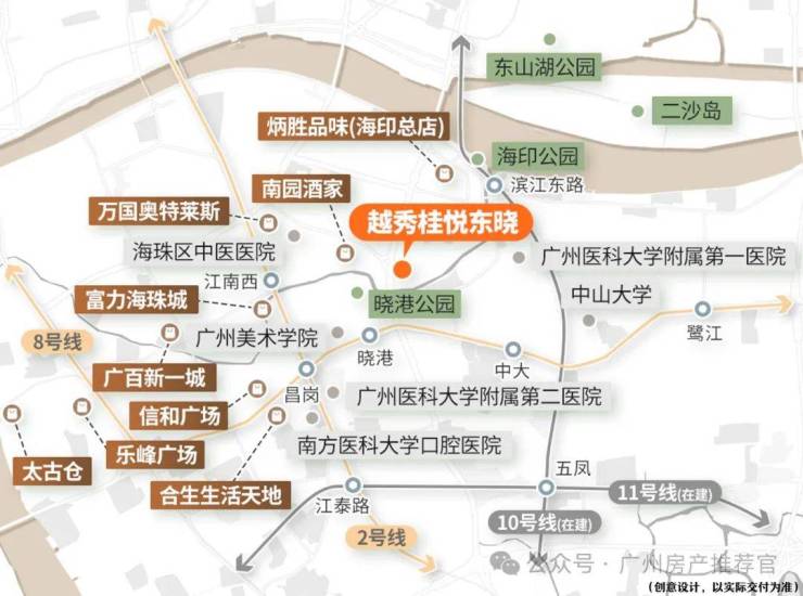 ✅海印桥旁、一桥东山、对望二沙,瞬达天河越秀、距离约8km内(约20分钟)通达珠城琶洲