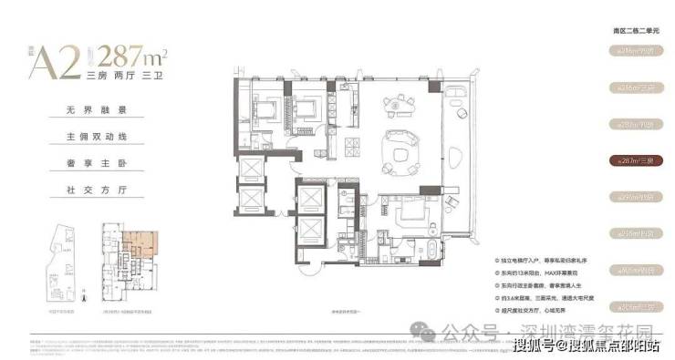 本次加推南区2栋2单元,共162套,主打低区216-287-295-305㎡、高区349-409-430㎡纯大平层。