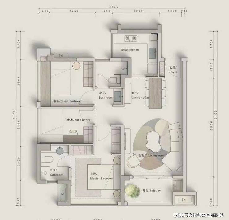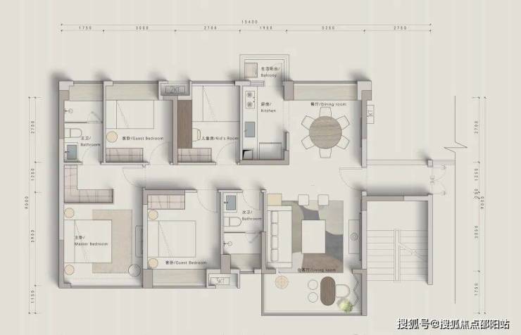 A1户型:89㎡横厅,使用率接近百分之百,相当于市场105平的户型