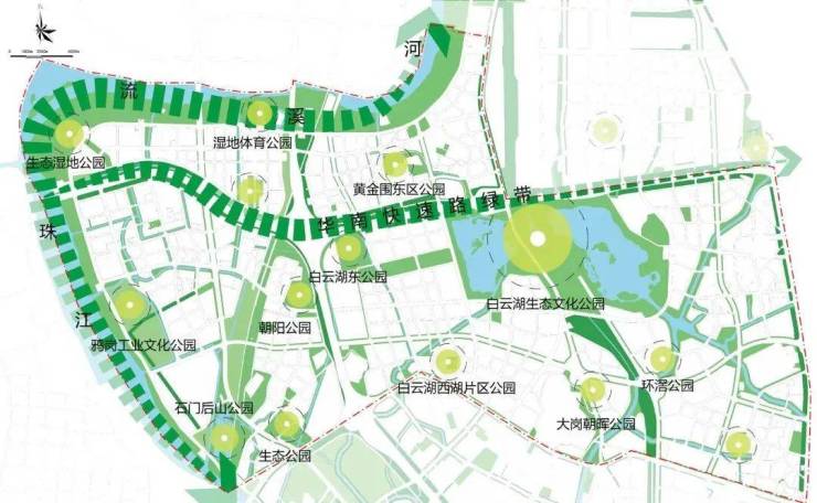 板块生态环境建设更加速发展,以3000亩白云湖和珠水湿地为基底,构建绿湖花海珠水环抱点轴共生景观格局,建设300m进公园的优质公共生态,为城市提供绿色健康的产业办公和生活环境。