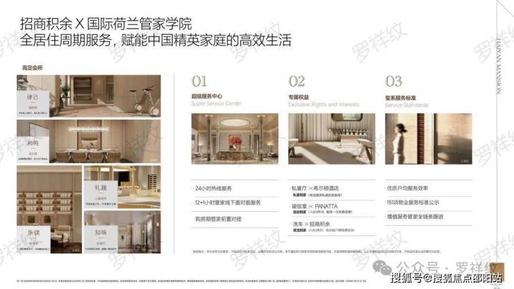 小区内带有会所、私宴厅、瑜伽房、洗车服务,有对着双界河公园的无边泳池。物业方面为招商的玺系服务标准,有24小时热线和12+1小时线下,物业费为10.8元/㎡/月。