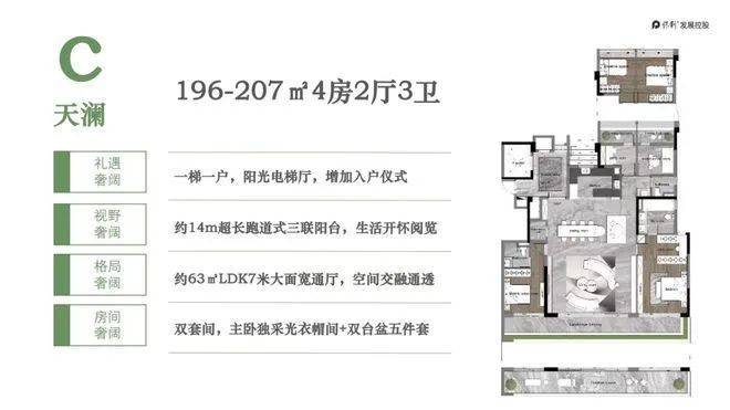 ,是整个项目的高端户型,景观资源最佳,适合追求极致居住体验的改善客户。