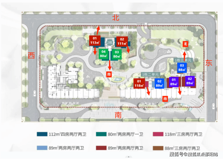 面积:80-89㎡3房2卫,112-118㎡4房2卫