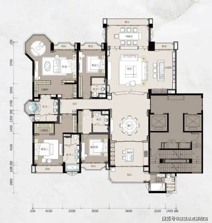 (带休闲厅、水吧,可调整为六个房间,含工人套房)