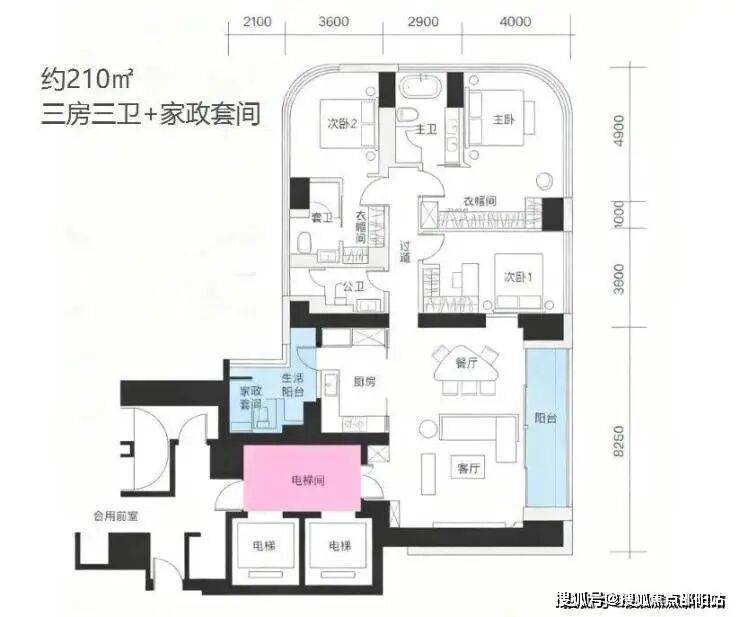 层高达到3.3-3.6米,L型阳台进深达2.8米,专梯入户,保障极致私密与尊贵感。