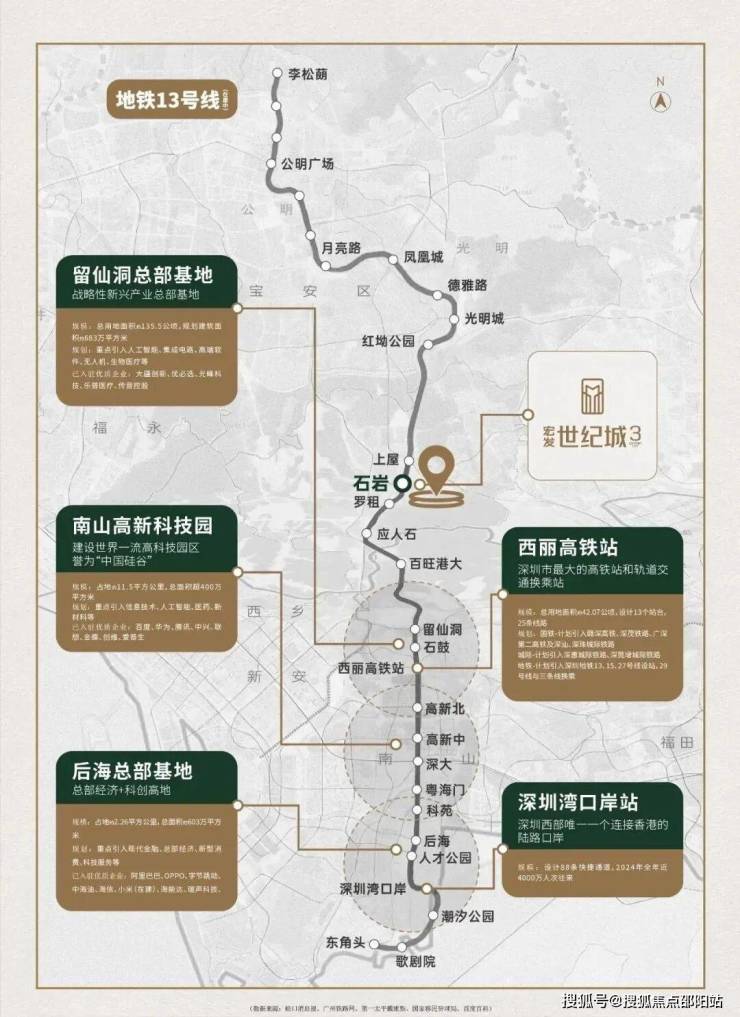 距13号线(在建中)石岩站约1公里,4站南山,7站科技园;