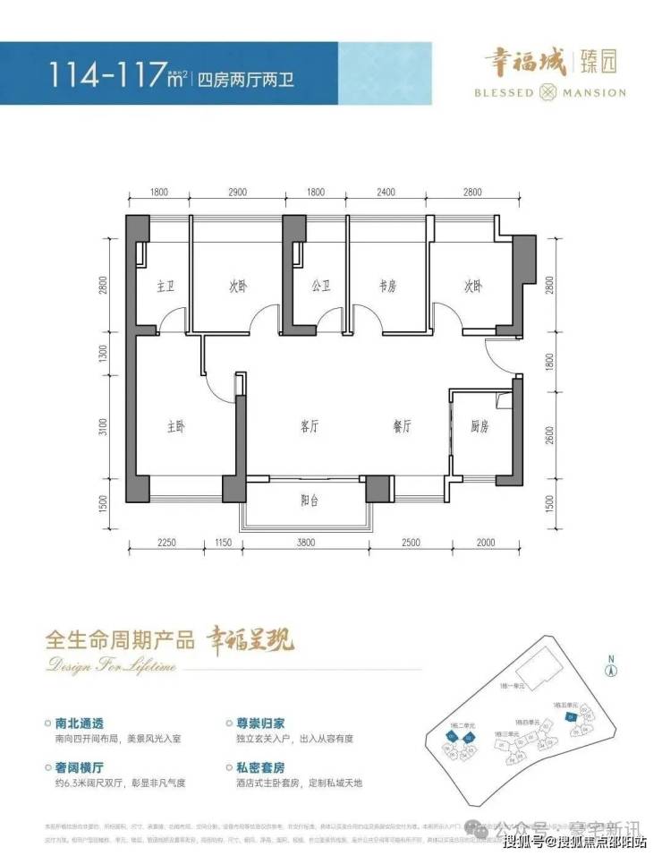 建面约114-117㎡4房2厅2卫(横厅)