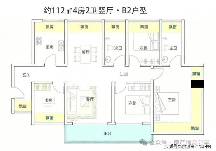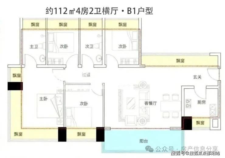 首推主力户型:112-122㎡纯四房住宅