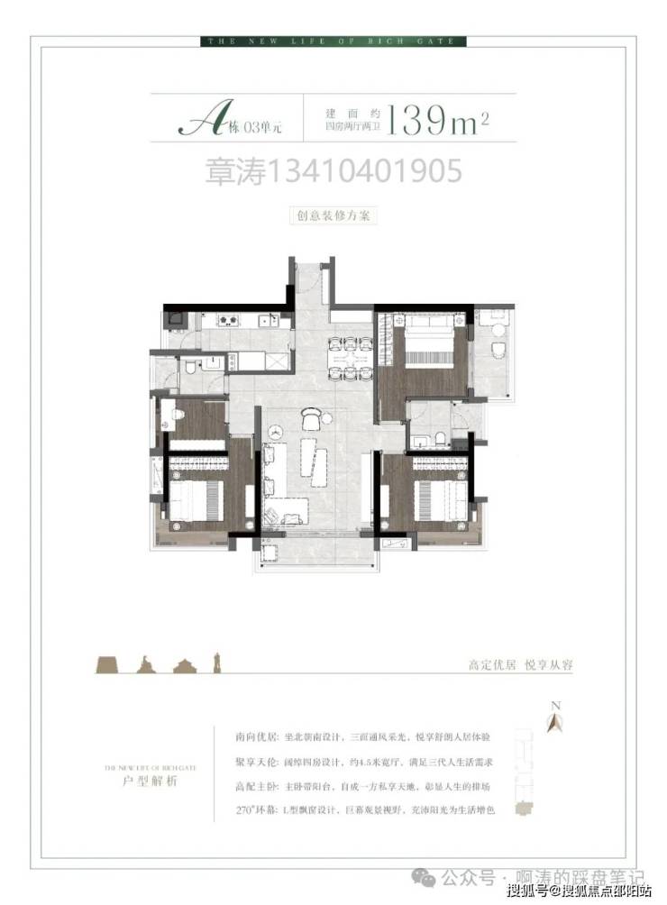 A栋03单元三面采光三阳台139㎡稀缺南向四房户型: