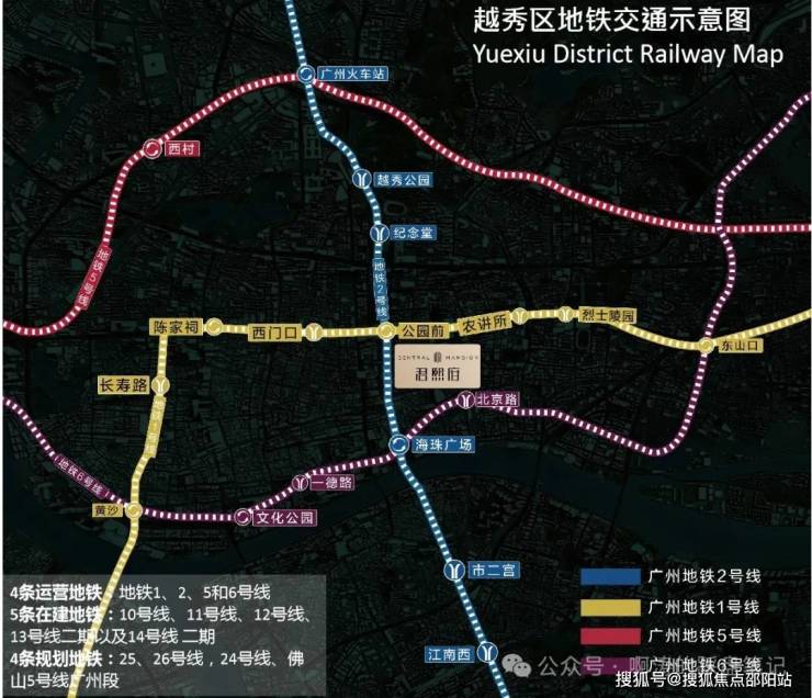君熙府与地铁 1 号线和 2 号线的交汇点公园前站仅相距约 400 米,毗邻解放路与中山路,能快速接驳东风路和内环路等,可迅速抵达天河、海珠、荔湾等各区核心地带。