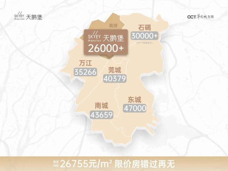 占据主城区核芯板块的华侨城天鹅堡,是东莞第二宗限售价宗地,毛坯限售价26755元/㎡。