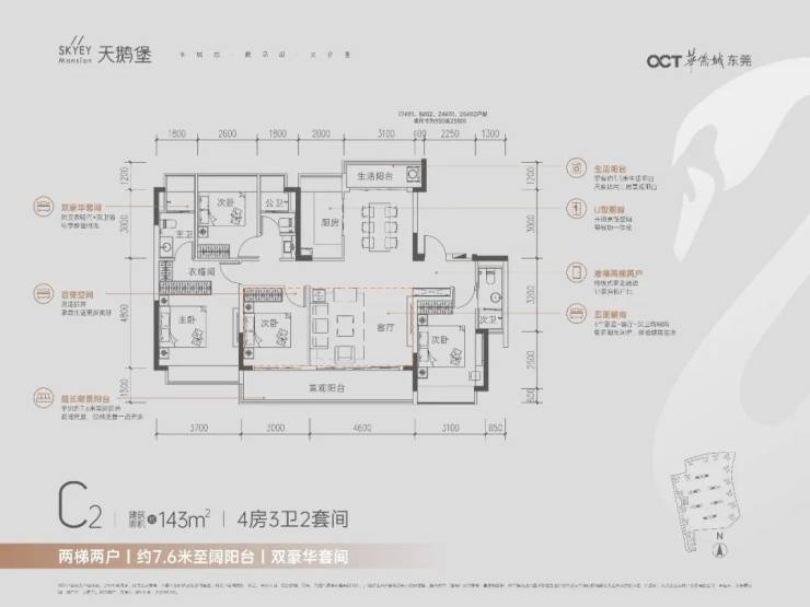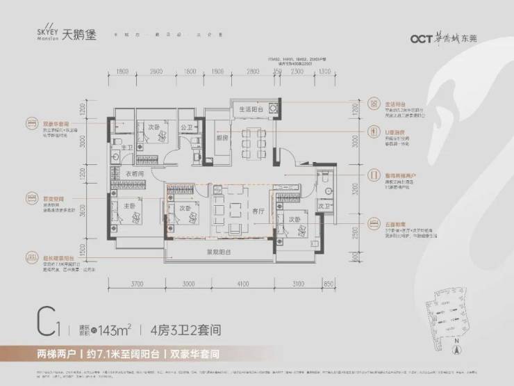 为了最大限度地呈现出改善品质,天鹅堡(建面约)143-193㎡4-5房,做到了稀缺一梯一户、双豪华套间设计,居住的私密性以及归家的仪式感得到了最大化的保障。更匠心打造超7~8.5米奢阔景观阳台,主城区 Max版低密美景呈现眼前。