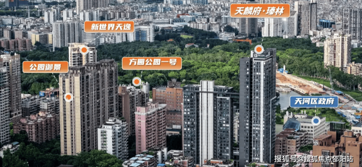 项目地处天河核心区,景观资源优越,东向 300 米直面天河公园,高楼层可南向眺望琶洲 CBD,尽享繁华与美景。