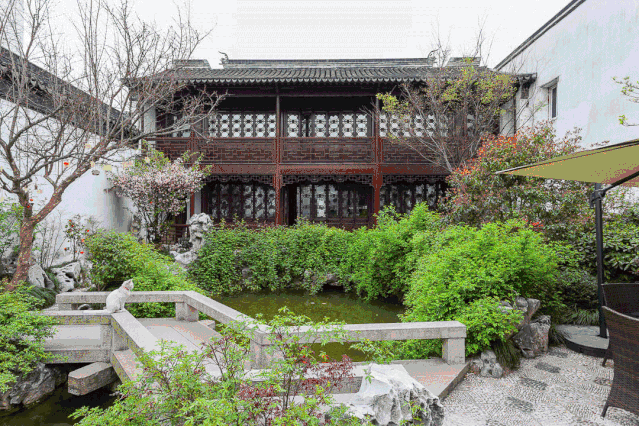 ● 大面积中式私家院落,遇上温泉泡池、花架休闲区,尽享难得的闲情雅趣;