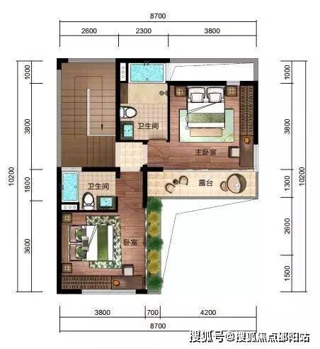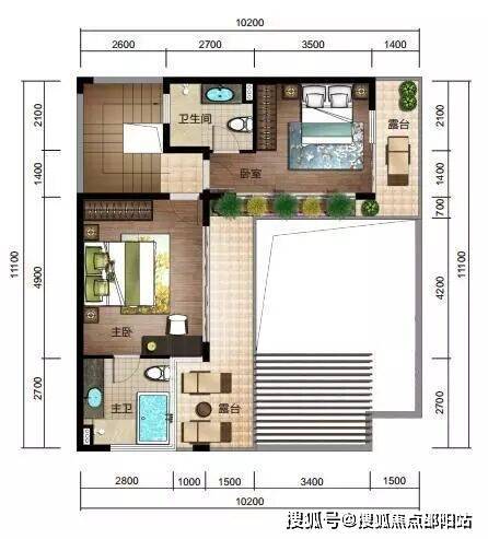 ● 双卧室套房设计,搭配独立卫生间,营造主人的私密空间。