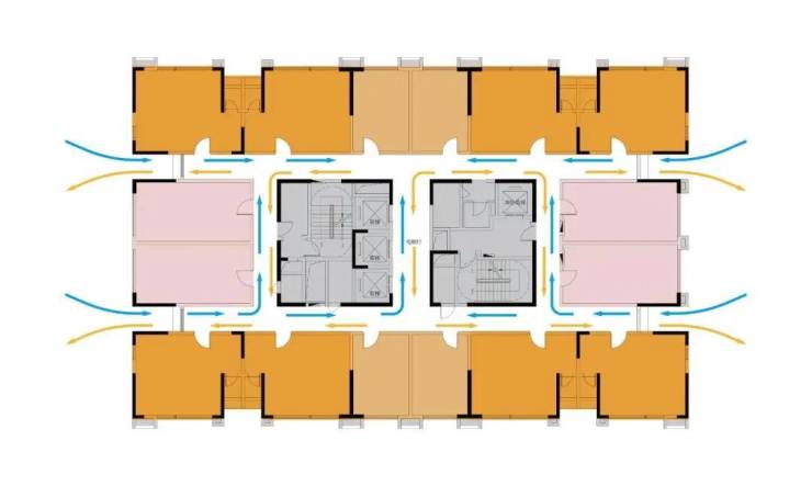 摒弃传统单过道,采用双环通走廊,极大提升通风采光