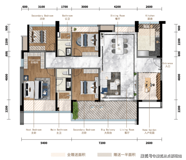 项目二期8栋02户型144㎡央景楼座户型,可瞰五桂山以及东区市区景观,还能看到星河CoCo City商超。在空间布局上,144㎡户型拥有专属入户花园,面积全赠送。