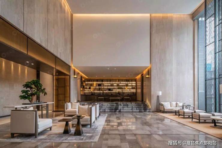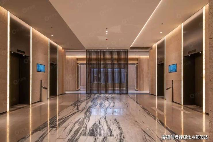 【气度】9.7米层高,程绍大师定制级艺术大堂;石材、黑钛、灯光的合理结合,典雅大气的大师定制级电梯厅及电梯轿厢;公区的每一处均甄选进口用材,彰显礼遇气度及企业恢宏形象。