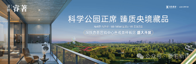 深铁睿著广场,是光明科学公园首排仅有的4个楼盘之一,也是首排楼盘当中除了振业天境云庭之外,仅有的总高31层住宅小区,容积率4.99,准现房小区,户户朝南或南北通透设计。